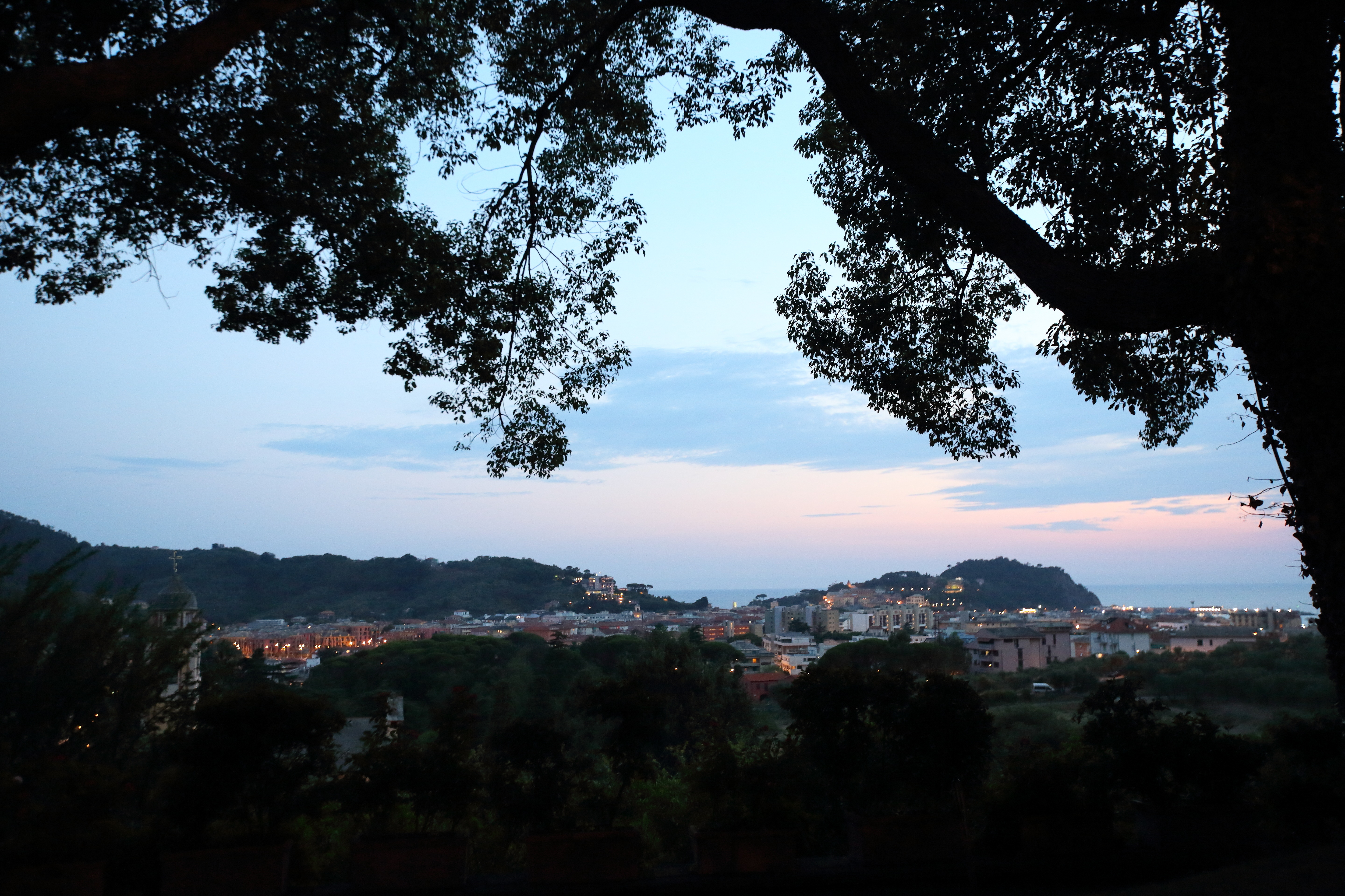 Il verde del parco, il blu del mare e le luci della piazzetta del borgo: quando si dice “scenario esclusivo”.