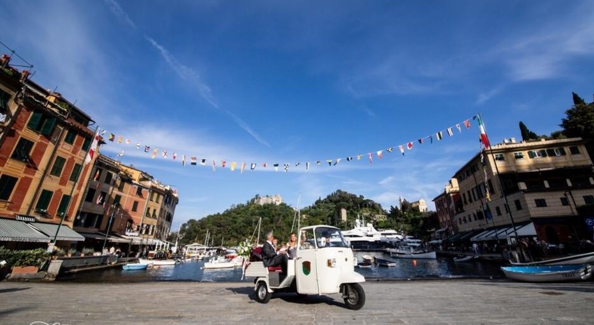 Con Mauro volutamente non ci fermiamo a Genova, scopriremo i suoi vicoli in un altro viaggio, ed ecco di fronte a noi il promontorio di Portofino: di natura, storia ed arte dove non possiamo non fermarci. In Italia tra le location più ambite per i destination wedding da tutto il mondo.
