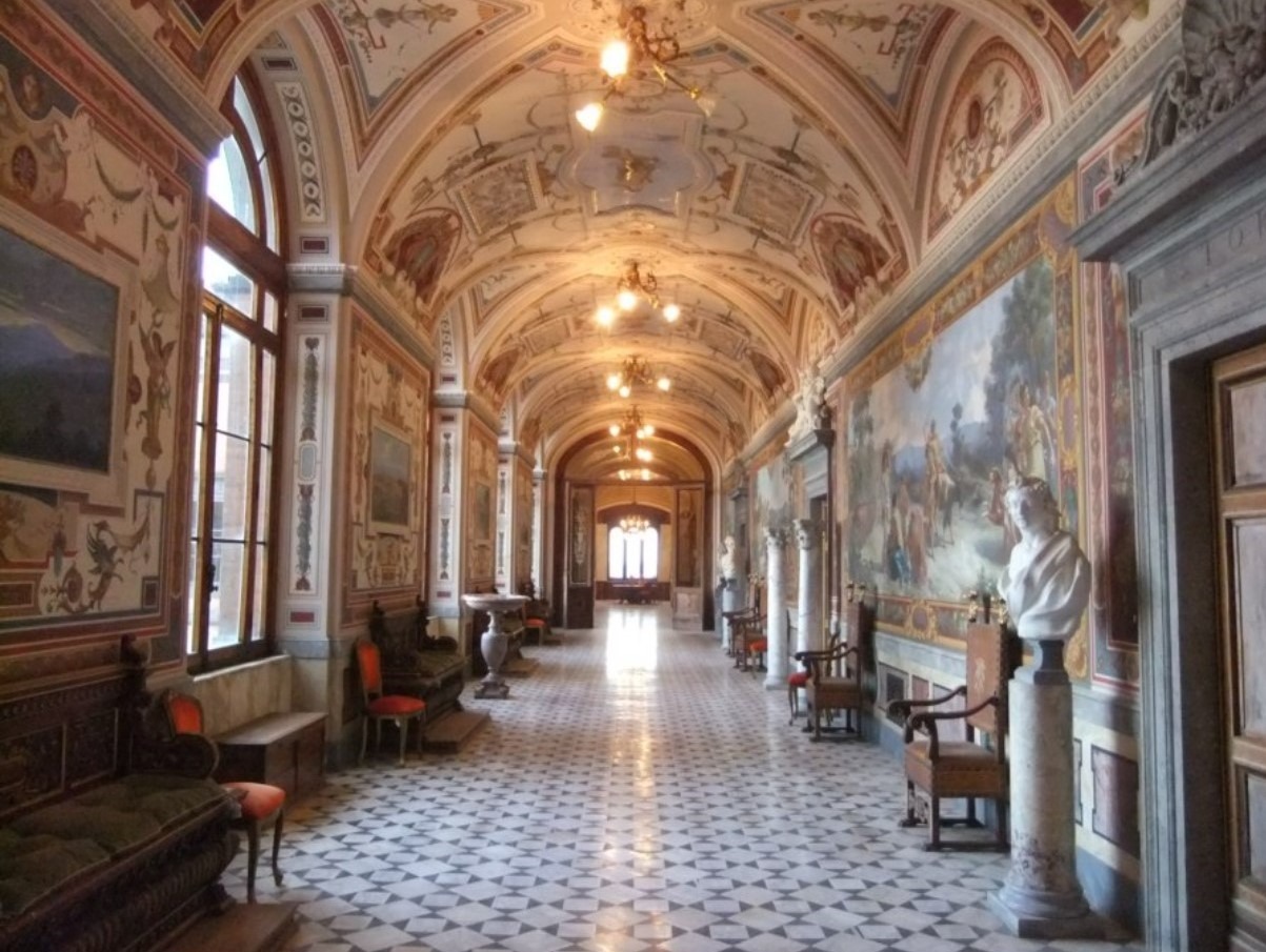 Due ampie gallerie totalmente affrescate e diverse sale più piccole multifunzionali rispondono a tutte le esigenze ed a tutti i desideri: la sala biliardo del ‘900 è perfetta per intrattenere gli ospiti o per ricreare una zona liquori; il salone in stile rinascimentale con il suo maestoso camino e tessuti preziosi si trasforma nell’angolo sigari e degustazione rhum e cioccolato; i fantastici giardini sono meravigliosi per il ricco buffet con vista su tutta la vallata.